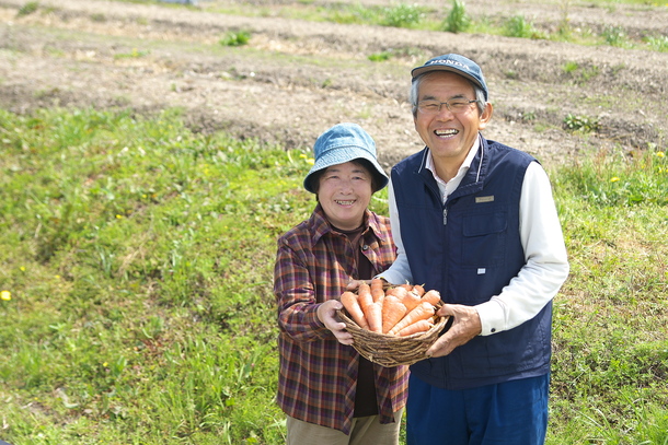なお、「にんじん」と「りんご」につきましては、こだわりの育成方法から、通常市場に流通販売されているものとは異なり、大きさ形など見た目は不揃いでありますが、「やさしさ」についてはご安心いただけることをご理解ください。