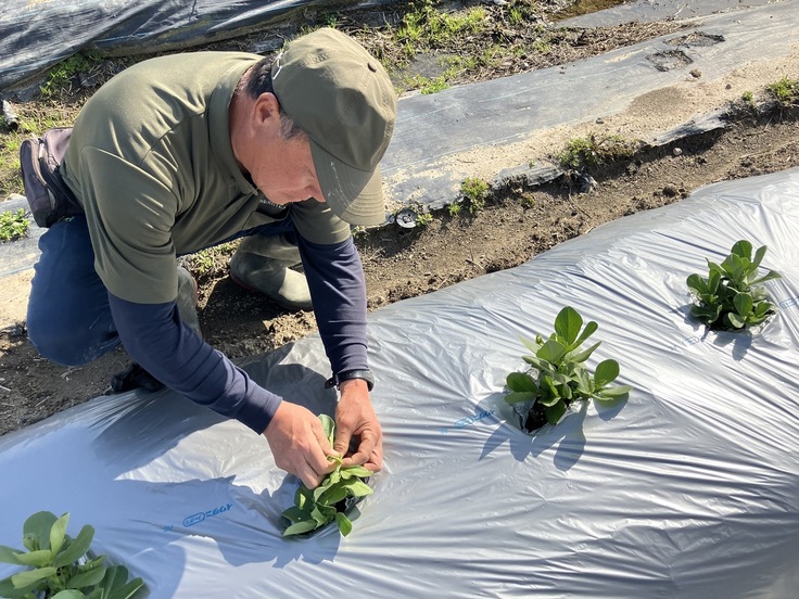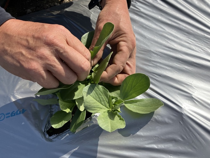 今日はまだ小さい苗がもっともっと元気に育つよう、摘芯を行いました。