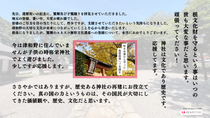 本日はいただいた応援コメントの一部をご紹介させていただきます。