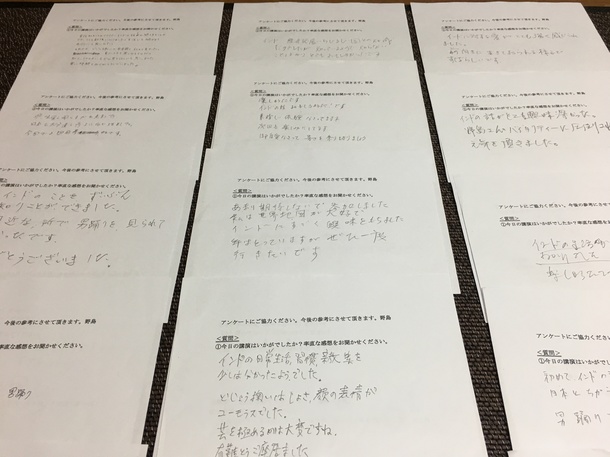 「インドの魅力」の講話に関するアンケートを一部抜粋してご紹介します。