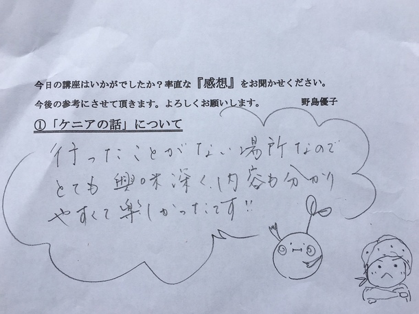 🌼あまりケニアの話は聞いた事がないので聞けて良かったです。
