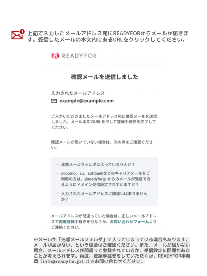 今回のプロジェクトに関する情報は、READYFORにご登録いただいているメールアドレスに通知させていただきます。
