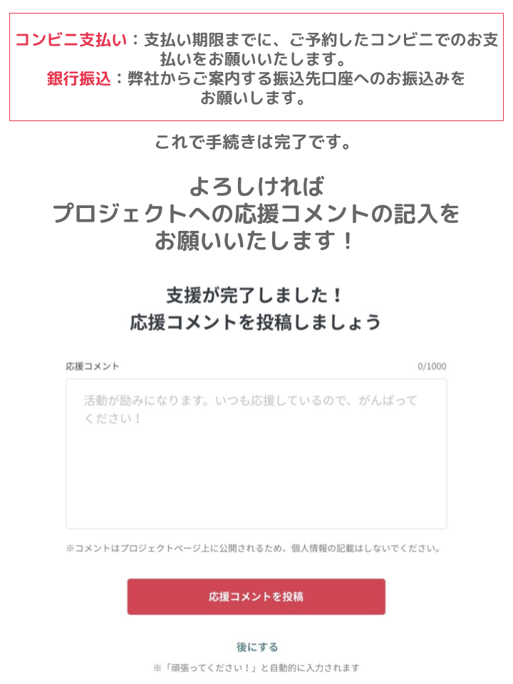 ご支援確定後の返金やキャンセルは、ご対応致しかねますので、何卒ご了承ください。ご支援の確認についてはマイページの『支援履歴』よりご覧いただけます。