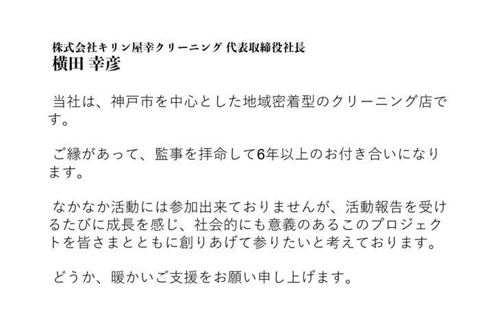 活動区域のやたなか小中一貫校(大阪市立矢田小学校・矢田南中学校)在学時に団体を設立し、現在は本業(内装工事)と両立しながらこの活動に取り組んでいます。