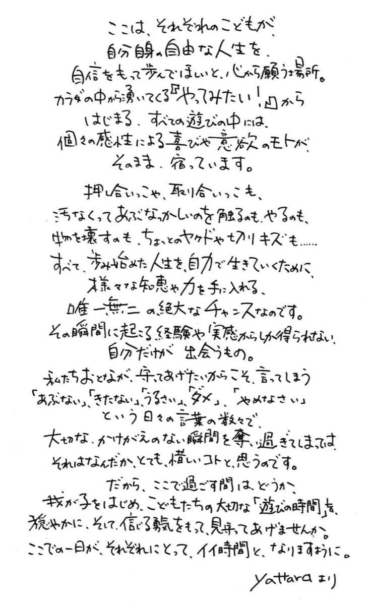 私たち大人が、そういうモチベーションで将来をのぞめていることは、次世代にとって、かけがえのないものをリレーしていくに違いないと、yattaraは信じています。