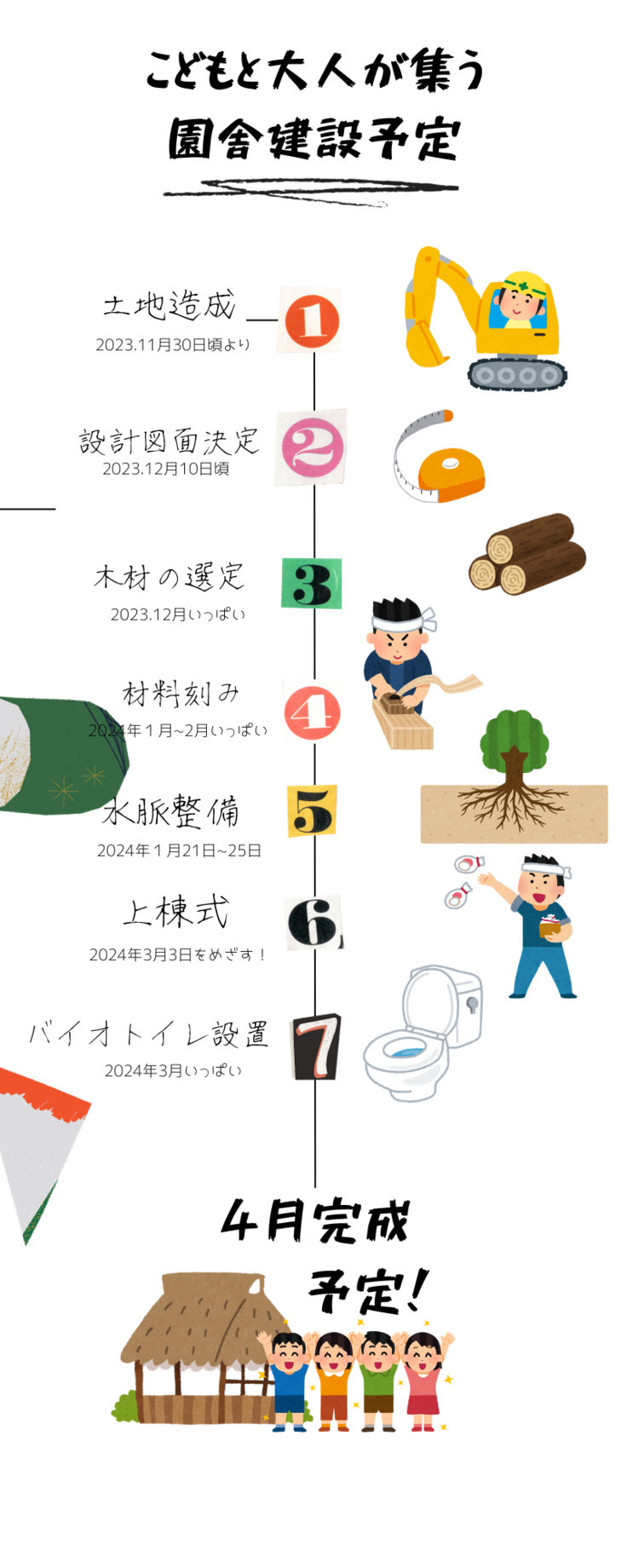 「暮らし体験」や「yattaraガイドツアー」は、園舎の建設状況を踏まえながら、