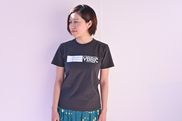YBBJCのロゴをあしらったオリジナルTシャツ。サイズはXS、S、M、L、XL、カラーはカーキ、スミの2色展開です。