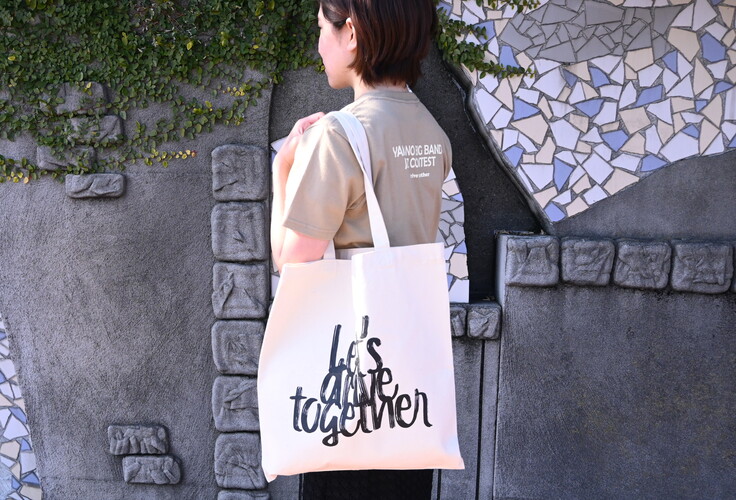 YBBJCのキャッチフレーズ「Let's drive together」をストリート風にデザインしたトートバッグです。楽譜などがゆったり入るサイズになっており、肩掛けしやすい長めの持ち手で、普段使いはもちろん、学校用のバッグにもおすすめです!