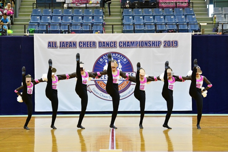 さて2019年、Glittersは9名になりました。怪我で経験の長いメンバーが離脱。育成から上がったばかりの競技1年生が多かったこの年、試合の度に振り付けやフォーメーションをどんどん変更。ひとつでもランクを上げられる振り付けを模索しました。厳しいレッスンの中でも選手達は自分達で考え、支え合い喰らいついてくるそんなシーズンでした。