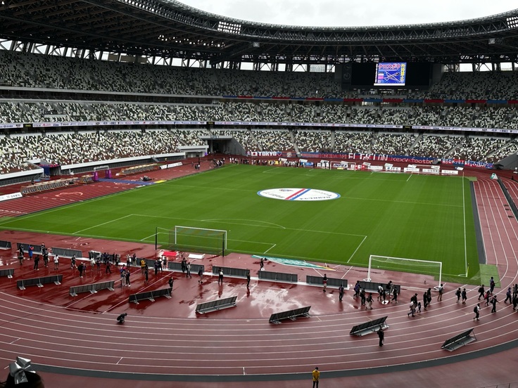 ▽新国立競技場で行われたJリーグの試合にキッズチアリーダーとしてY.C.D揃って参加しました。