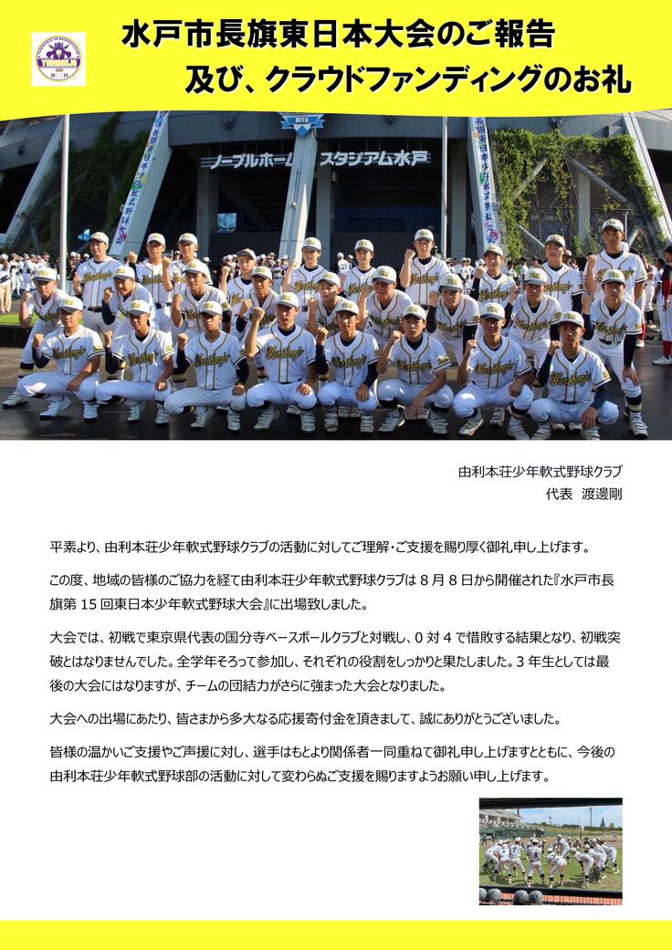 水戸市長旗東日本大会のご報告 及び、クラウドファンディングのお礼