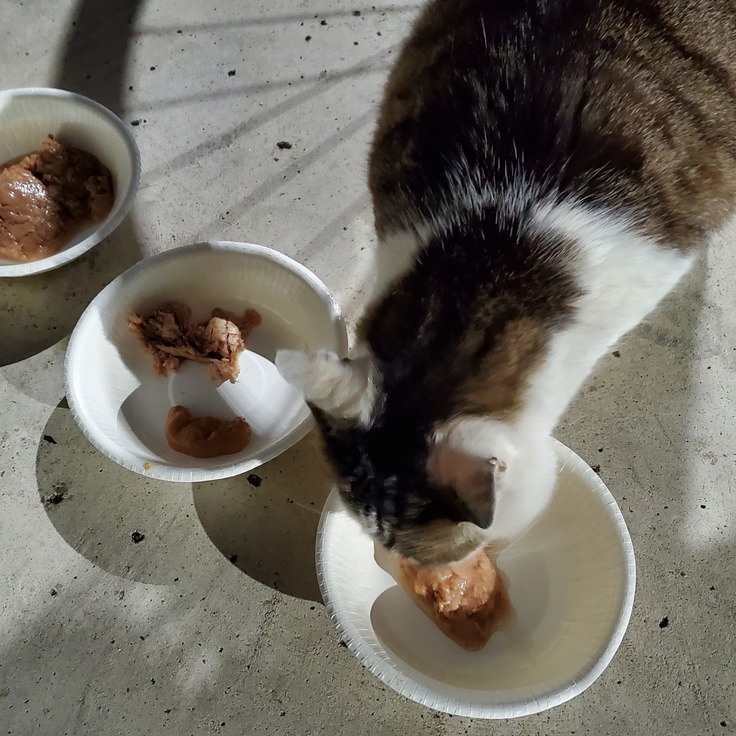 猫たちの居場所がわかってしまうよう場所で食べてる子もいるため写真が撮れてませんが、