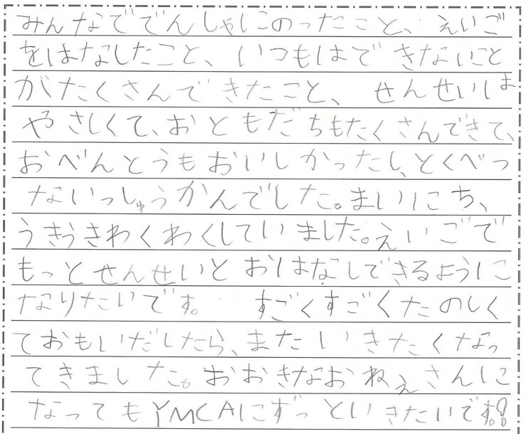 【語学:サマースクールに参加(小1)感想文・思い出の絵】