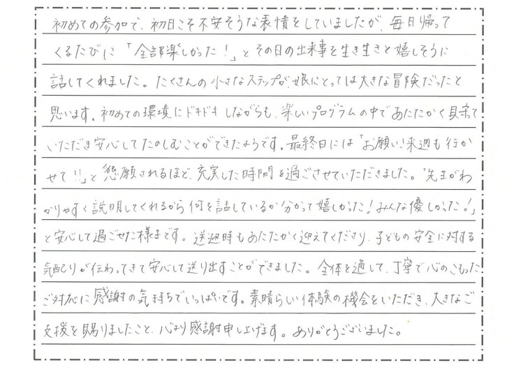 【参加者保護者からの感想】