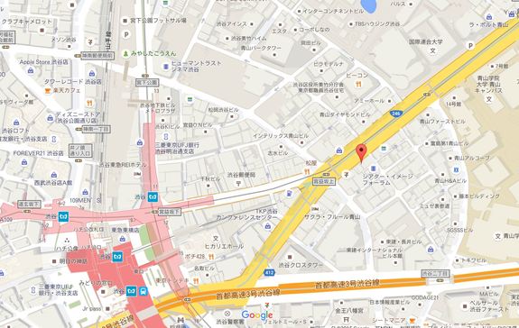 スペースの場所は東京都渋谷区の青山通り沿いで渋谷駅から徒歩6分、表参道駅から徒歩8分ぐらいの、大学生が非常に利用しやすい場所です。事前に場所を検討するにあたり、大学生が集まりやすい場所として、どこにあると利用するかのアンケートを取ったところ、渋谷がダントツの意見としてあがってきました。ただ、スペースを取得するための費用がかなり高額になってしまいます。
