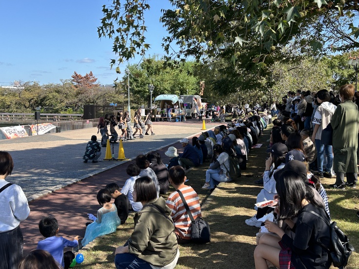 大和高田市の賑わい事業で、千本桜で有名な大中公園及び桜華殿を使って、和太鼓に始まり、園児のお遊戯、キッズダンス、コーラス、吹奏楽などでステージを開催。公園内では、キッチンカーや縁日、マルシェなど26店舗が参加した、賑わったイベントです。