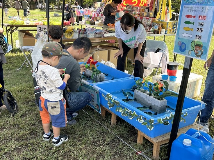 マルシェ(焼きそば、餃子、アクセサリーなどの販売及び、ものづくり体験など)と子供縁日を実施。