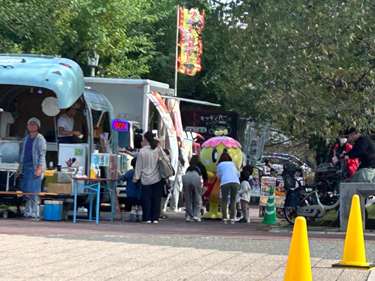 人気のキッチンカー(唐揚げ、クレープ、ラーメン等)配置
