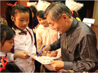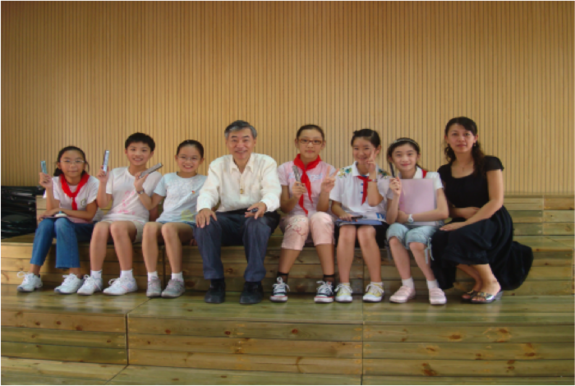 (刀茅巷小学校の子ども達と生徒さんたちと一緒に)