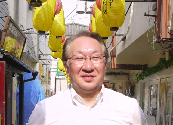(株式会社ボブ総括本部長の保坂操さん、夜明け市場ストリートにて)