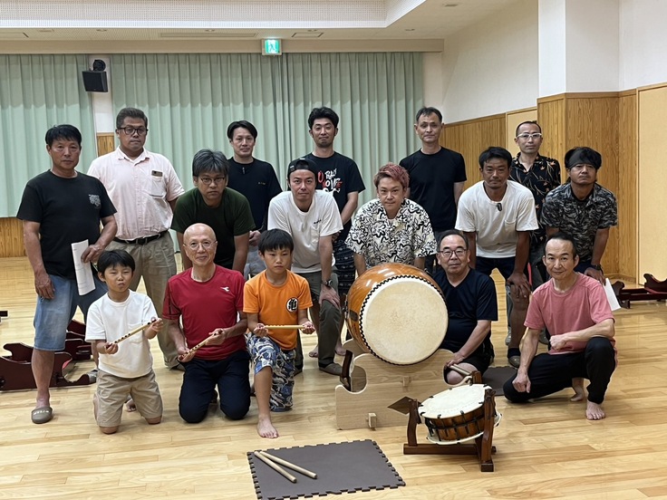 普段は太鼓チームだけでお囃子のお稽古をしていますが、祭りに向けて若衆もお囃子の唄の稽古に参加しました。