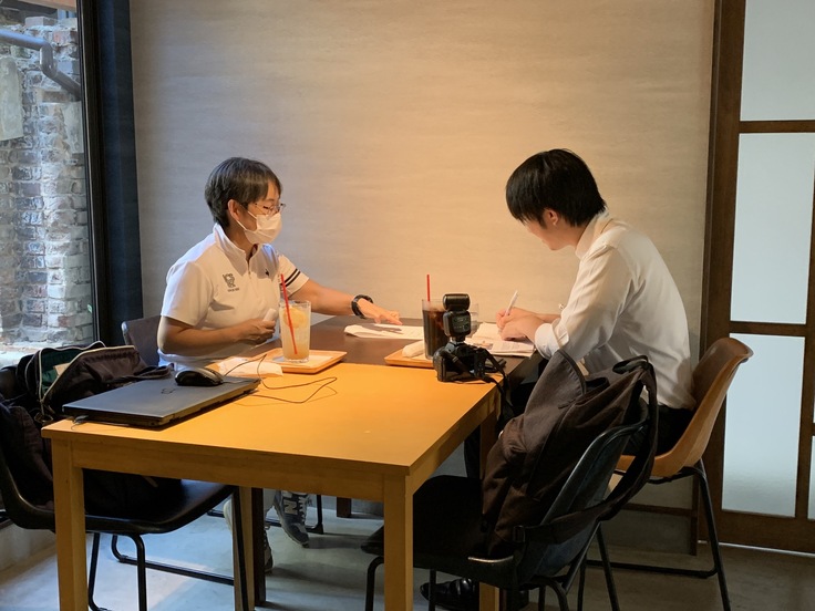 呼子町内にある古民家カフェ『百と十_Vesper』さんで待ち合わせ、取材していただきました。