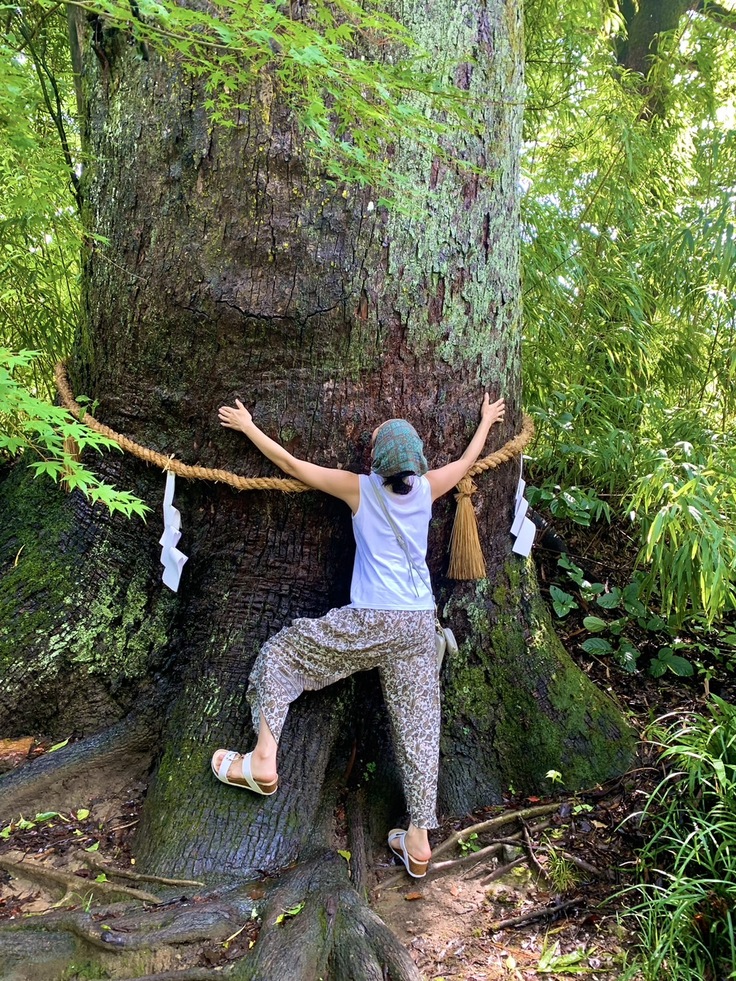 大きな楠にセミの様にしがみついて〝ここで一緒にヨガしよう!〟と伝えてきました😂笑