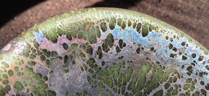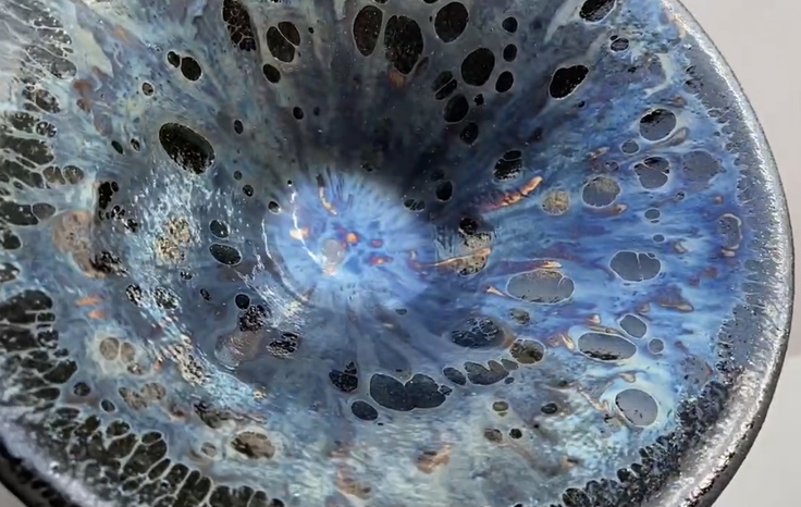 釉薬内部から生まれ出るダイナミックな動きが、まるで、地球のマントルや火山活動、虹やオーロラ、そして宇宙の星雲、銀河のように現出することをお見せしていきたいと思います。