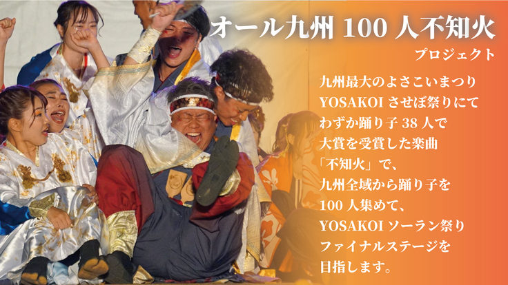 そのために、オール九州100人不知火プロジェクトと銘打ち、九州全域から100人の踊り子を集めたいと考えています。