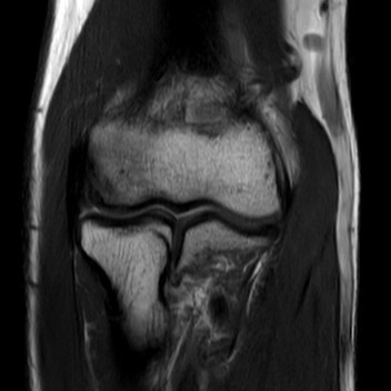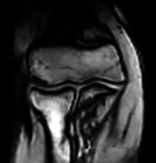 次に我々が大学で実際に検診に使用している0.2テスラの四肢専用(手足専用)MRI の肘の画像です。もちろんしかるべき承認をうけて発売されている機械です。