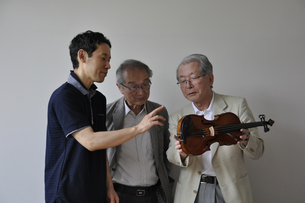 修理をお願いしていた安冨弦楽器工房の安冨さんが来館、説明と音出しをしてくださいました。