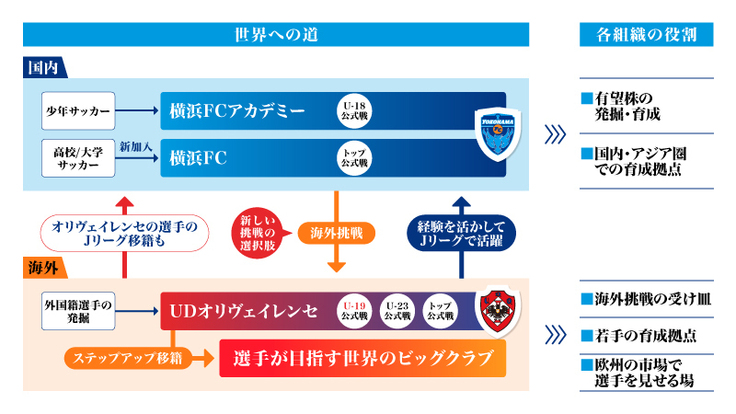 横浜FCが取り組む日欧マルチクラブオーナーシップは、私たちと同じグループであるUDオリヴェイレンセ(ポルトガル)への移籍ルートを活用することで、若手選手の欧州挑戦を実現する仕組みです。