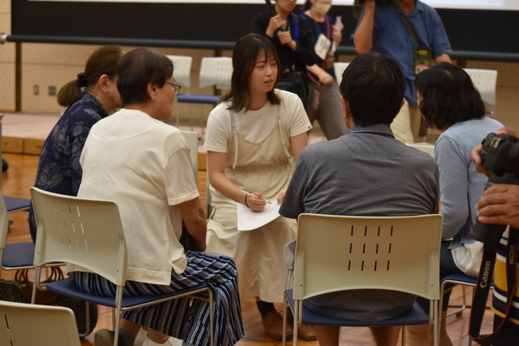 引き続き行われたトーク「若者は平和のために何をすべきか」では、平和のために何をしたら良いかを参加者を交えてグループワークで話し合いました。世代を超えた交流となり、活発な意見交換が行われました。