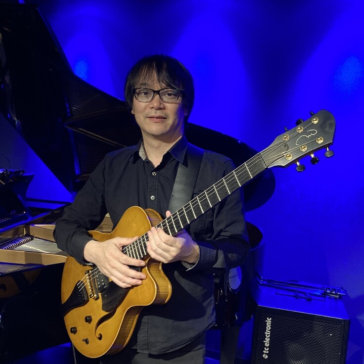 10代の頃よりギターに目覚め、地元にあったジャズライブハウスに通い詰めました。そこで行われるプロの方や、地元中心で活動されてる方々の素晴らしい生演奏をたくさん聴き、ジャズの虜となりました。さらに音楽を知りたいと、東京〜ボストンに行き音楽学校に通ったりし、音楽活動に勤しみました。とにかくジャズが大好きでみんなとワイワイ演奏するのが大好きです。