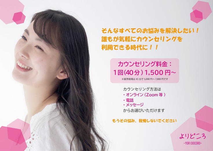私たちは、お手頃価格で気軽にカウンセリングを受けることができ、日常を明るく過ごせる方が1人でも多く増えるようお手伝いしたいと考えております。