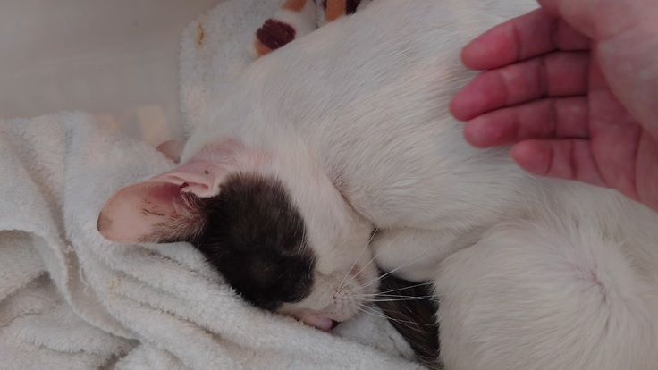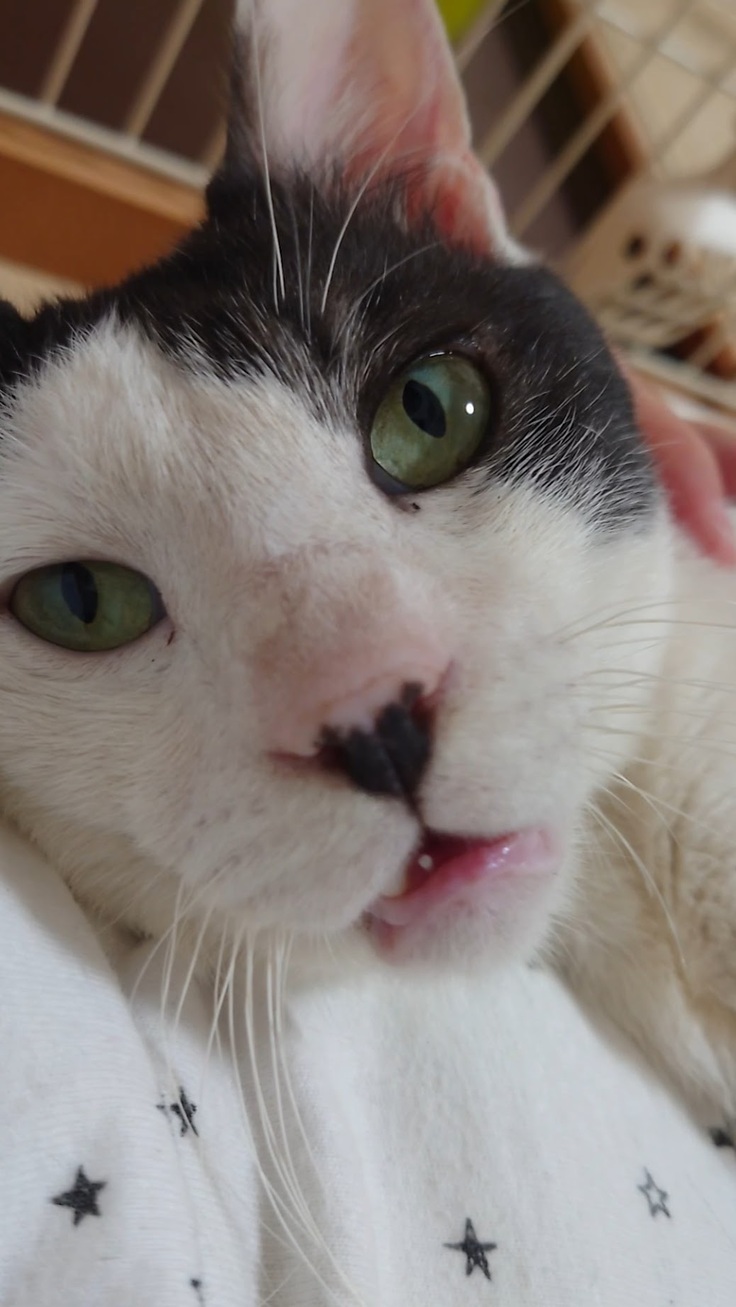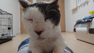 🐈日に日に皮膚症状が良くなり、目が開いてきたオレオ🐈