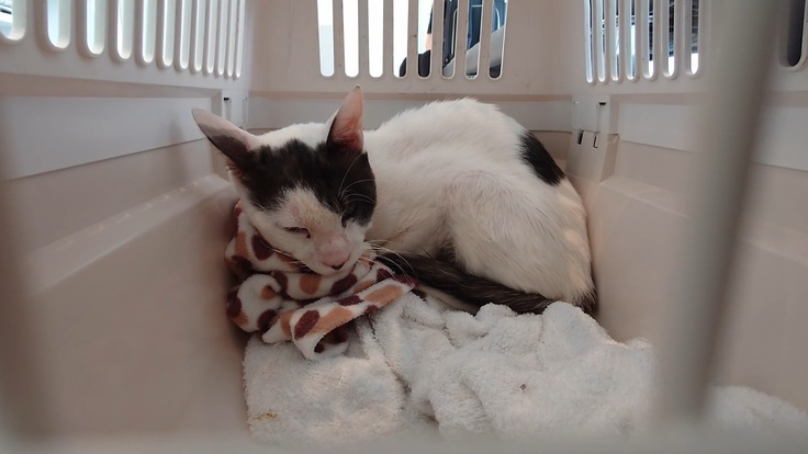 保護した当初は皮膚もボロボロで目が開かずに、