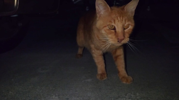 ヨッちゃんは夜中にいつも真向かいの駐車場にいましたが、私を見ても別に近付いてくることもなかったので、ごはんで自宅まで来てくれるかどうかも分からなかったですが、ヨッちゃんが馴れてくれるまで気長に頑張ろうと思いました。ごはんを持ってヨッちゃんを呼んだら警戒しながらも自宅まで近付いてきてくれました。今まで遠目でしか見てなかったので、ヨッちゃんぽいんだけどなぁという段階で止まっていましたが、近くで顔を見て確信しました。