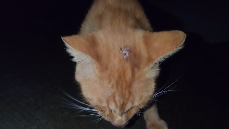 🐈2日目は真正面から敵にド突かれたのか、おでこに傷を作ってきました🐈