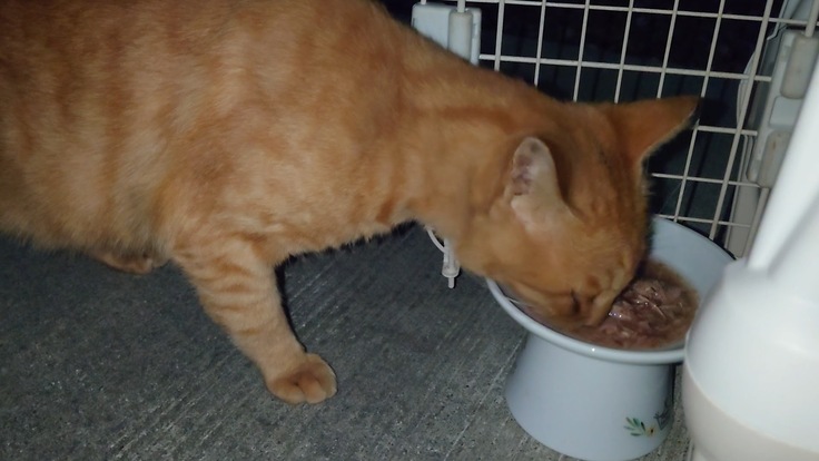 🐈1日目。ガツガツごはんを食べるヨッちゃん🐈