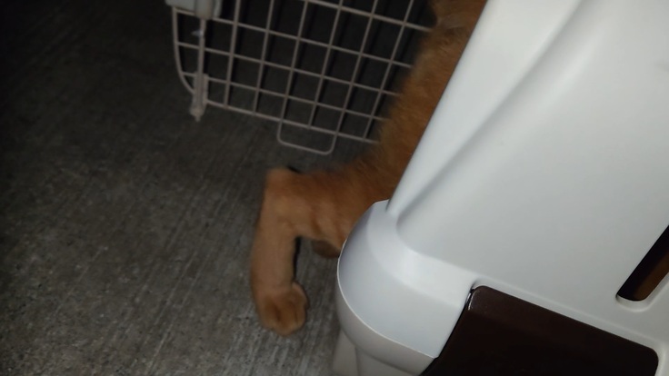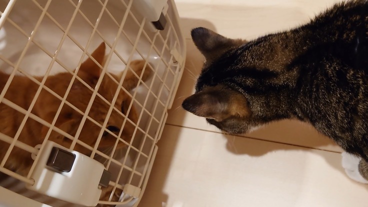 🐈うちに来て12日目。ヨッちゃんが触ることを許してくれたので、クレートの前でごはんを食べる練習を始めました🐈