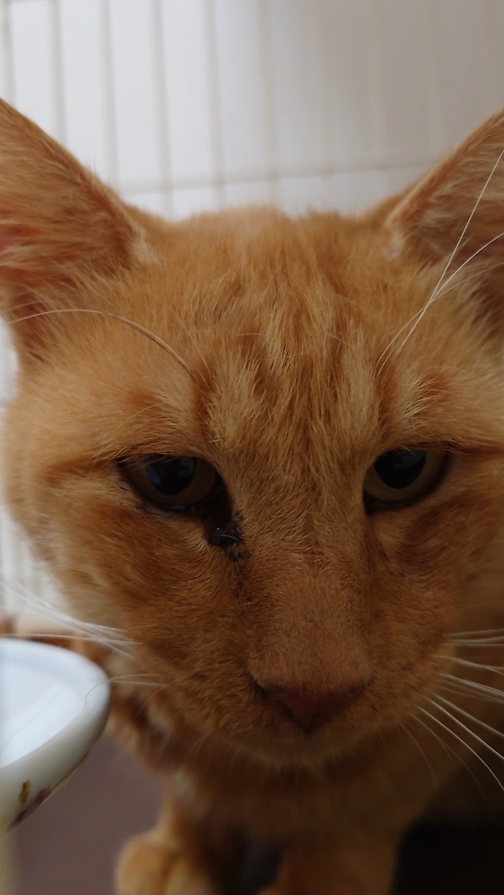 🐈空白の7ヶ月。鼻水を垂らし、頬はこけ、あばら骨が浮き出るくらい痩せていました。どこでどう過ごしてこうなったのでしょうか🐈