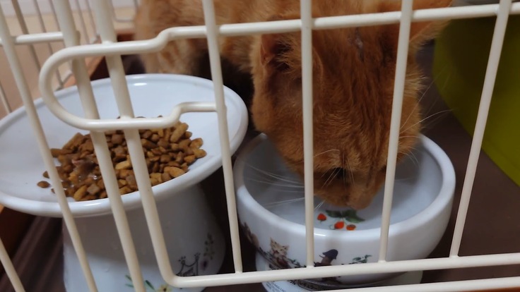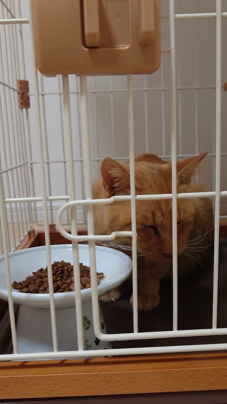 🐈急に捕まり(保護)、車で連れ回され(動物病院)、大事なおたまたまを取られて(去勢手術)、人間不信に陥るヨッちゃん。ごはんも拒否しました。🐈