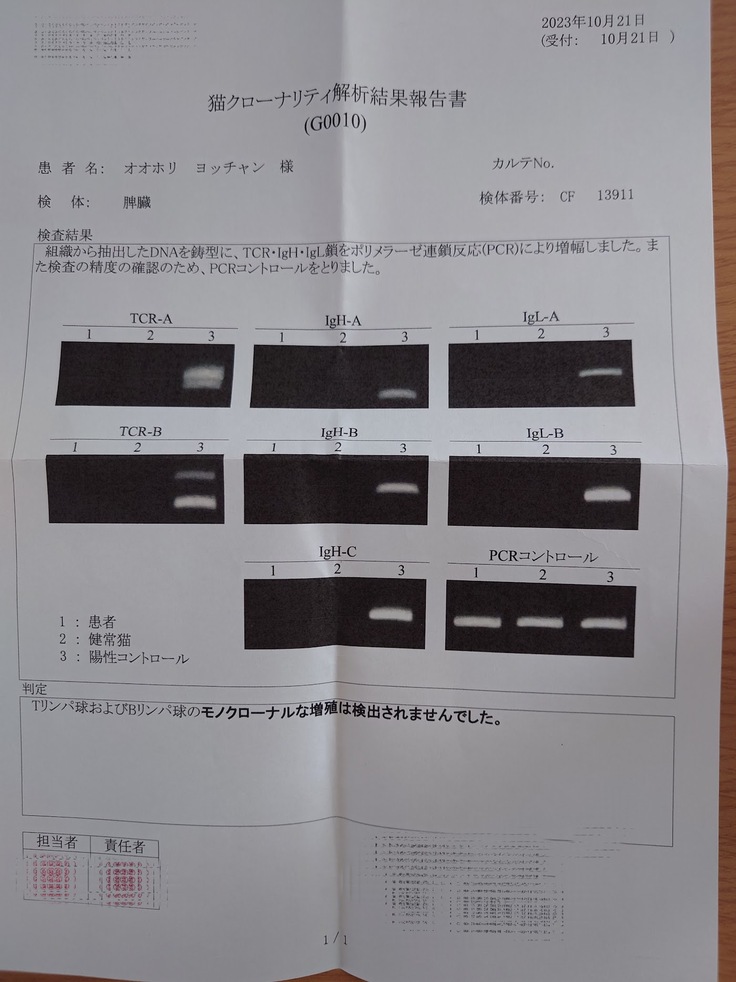 🐈リンパ腫は外注の遺伝子検査をしてもらい1週間後に結果が帰ってきました🐈