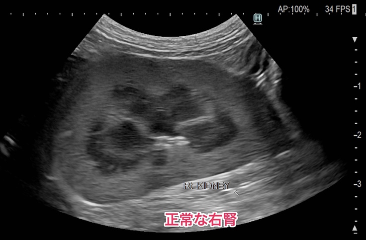 🐈右側の腎盂。左の腎盂のように黒い影が膨らんでいません🐈