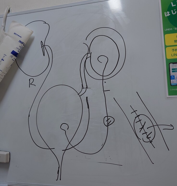 🐈先生が書いてくれた手術の説明の図。絵が上手で説明も分かりやすかったです🐈