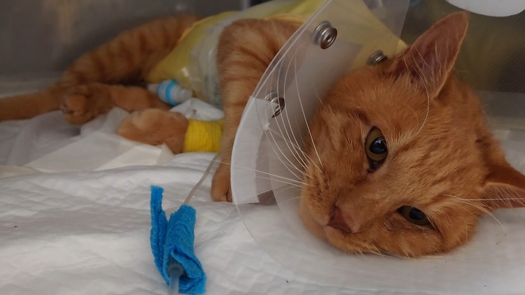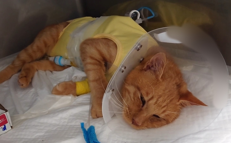 いろいろな管で繋がれている手術を頑張ったヨッちゃん🐈