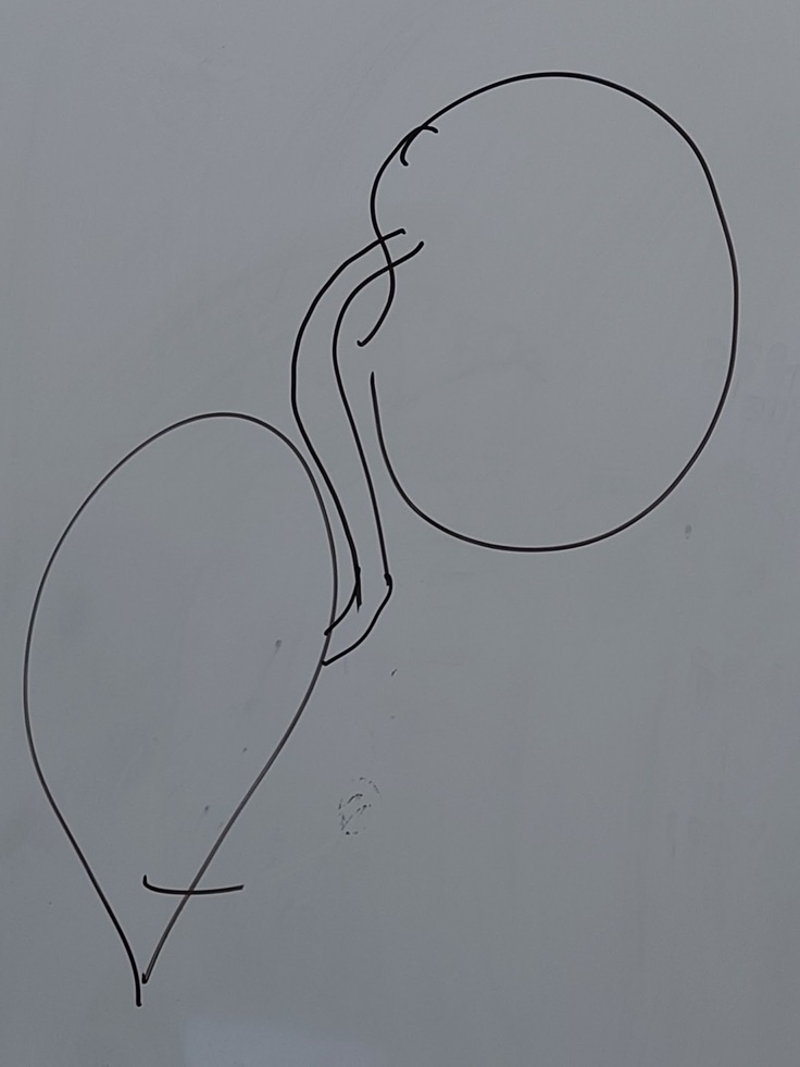 ヨッちゃんのお腹を開腹した後に状態を診て②の術式でいけそうだったので、細くなっている尿管の手前の部分を切って膀胱と腎臓と尿管を繋げる手術をしたことと、腎臓には今カテーテルとドレーンが入っていて、おしっこはカテーテルを通って出るようになっていて、ドレーンは血液や浸出液を排出する目的で入れていて、11/8(水)か9日(木)にカテーテルを抜いて、縫合している尿管から漏れ等がなかったら2~3日それで様子を見させてもらって大丈夫だったらドレーンも外して、最後に術後の検査をして退院という予定で考えていますということでした。