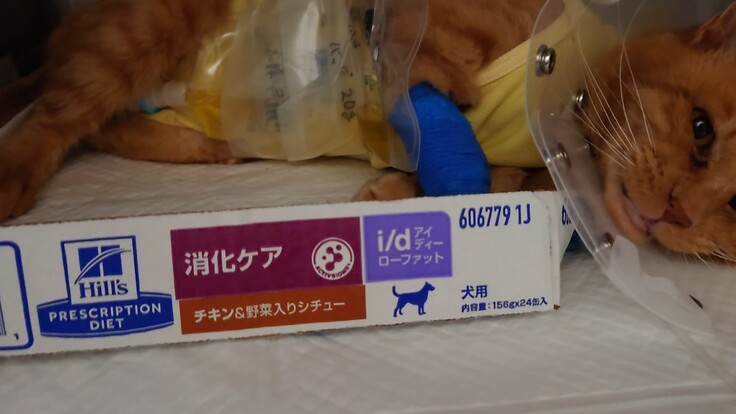 🐈入院2日目。2日続けてごはんを食べなかったので食欲増進剤を注入してもらい、消化に良い療養食を9割食べれるようになりました。🐈