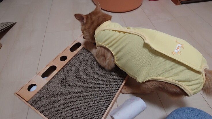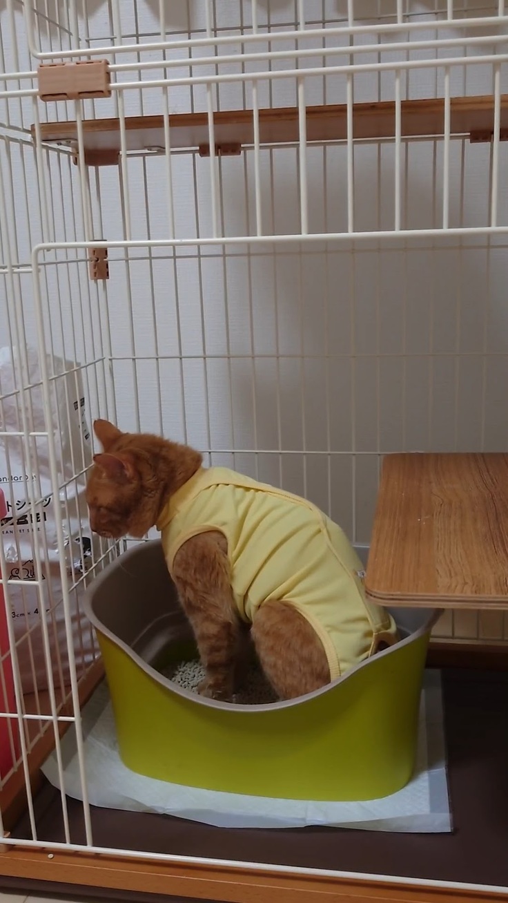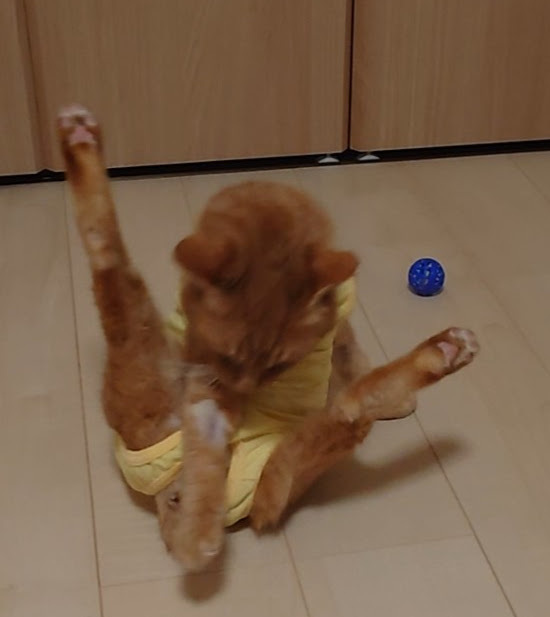 🐈術後服のせいで後ろにズッコけるヨッちゃん🐈